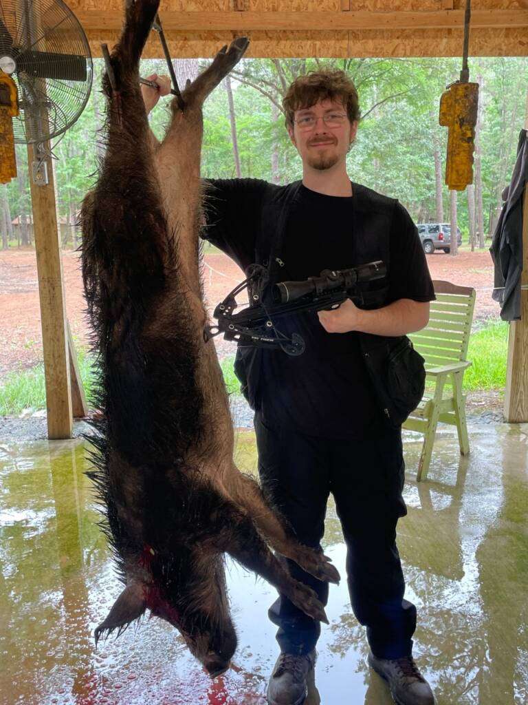 It only took one shot from roughly 15-20 yards, and the hog died in less than 30 seconds.